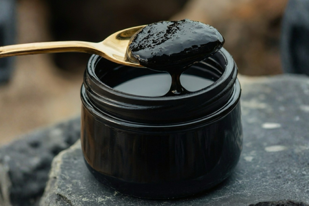 - Purified Shilajit resin standardized for ≥ 20% fulvic acid